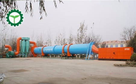 滾筒烘幹機的熱源來自燃燒裝置,本烘幹機采用順流式加熱方式。因此需要烘幹的物料,從進料箱、進料溜進入筒體,即被螺旋抄板推向後。由於烘幹機傾斜放置,物料一方麵在重力和回轉作用下流向後端,另一方麵物料被抄板反複抄起,帶至上端再不斷地揚撒下來,使物料在筒內形成均勻的幕簾,充分與筒內的熱氣流進行熱交換,由於物料反複揚撒,所含的水分逐漸被烘幹,從而達到烘幹的目的。